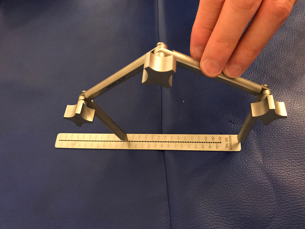 Examples of use include measuring limb length in total hip arthroplasty, confirming length in megaprosthetic knee replacements, and assessing dimensions of allografts.