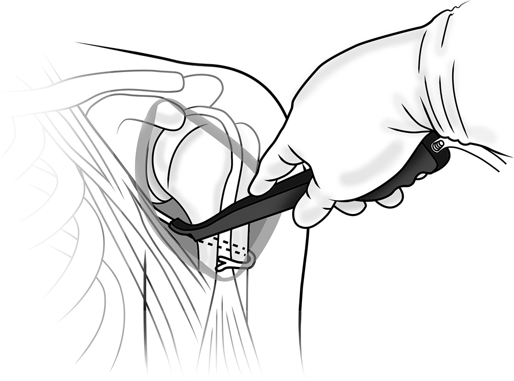 Designed with a curved tip to slip all the way under the capsule during shoulder surgery, helping to protect the axillary nerve, while also providing suction of smoke away from the surgical site