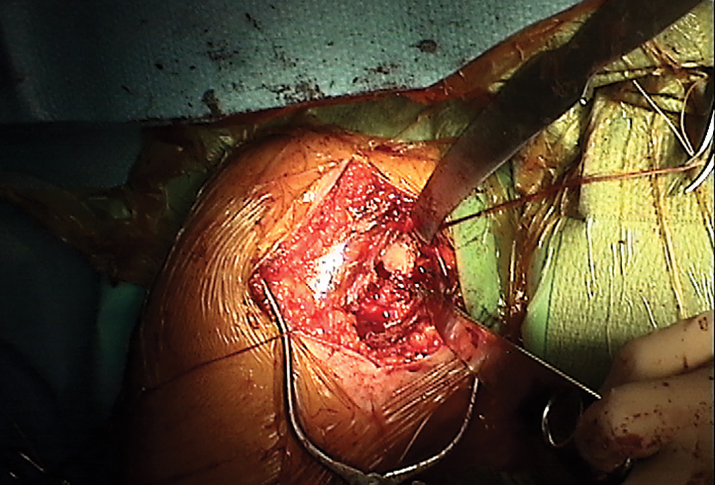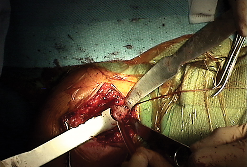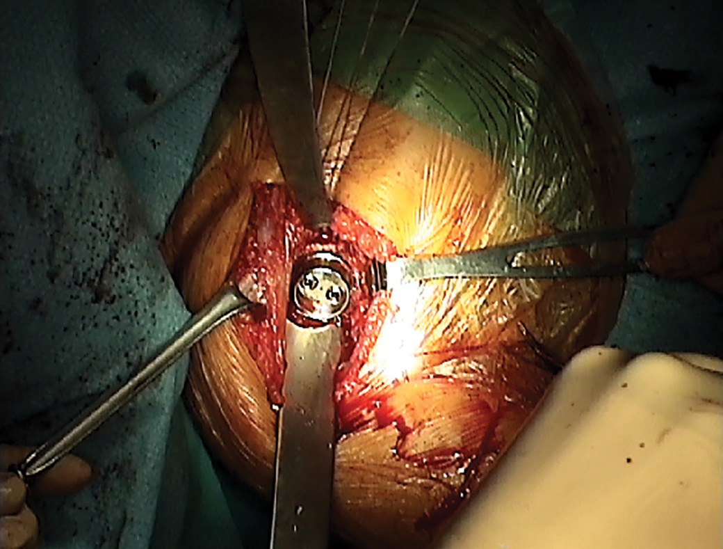 Allows visualization and direct access to the glenesphere base plate through a deltopectoral incision with intact pectoralis major insertion.