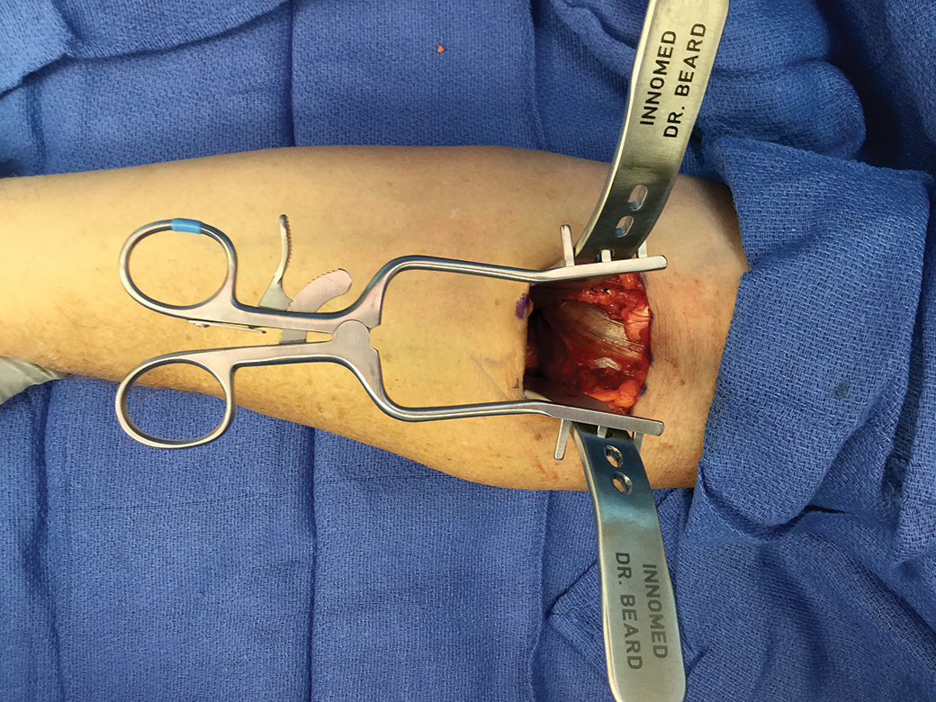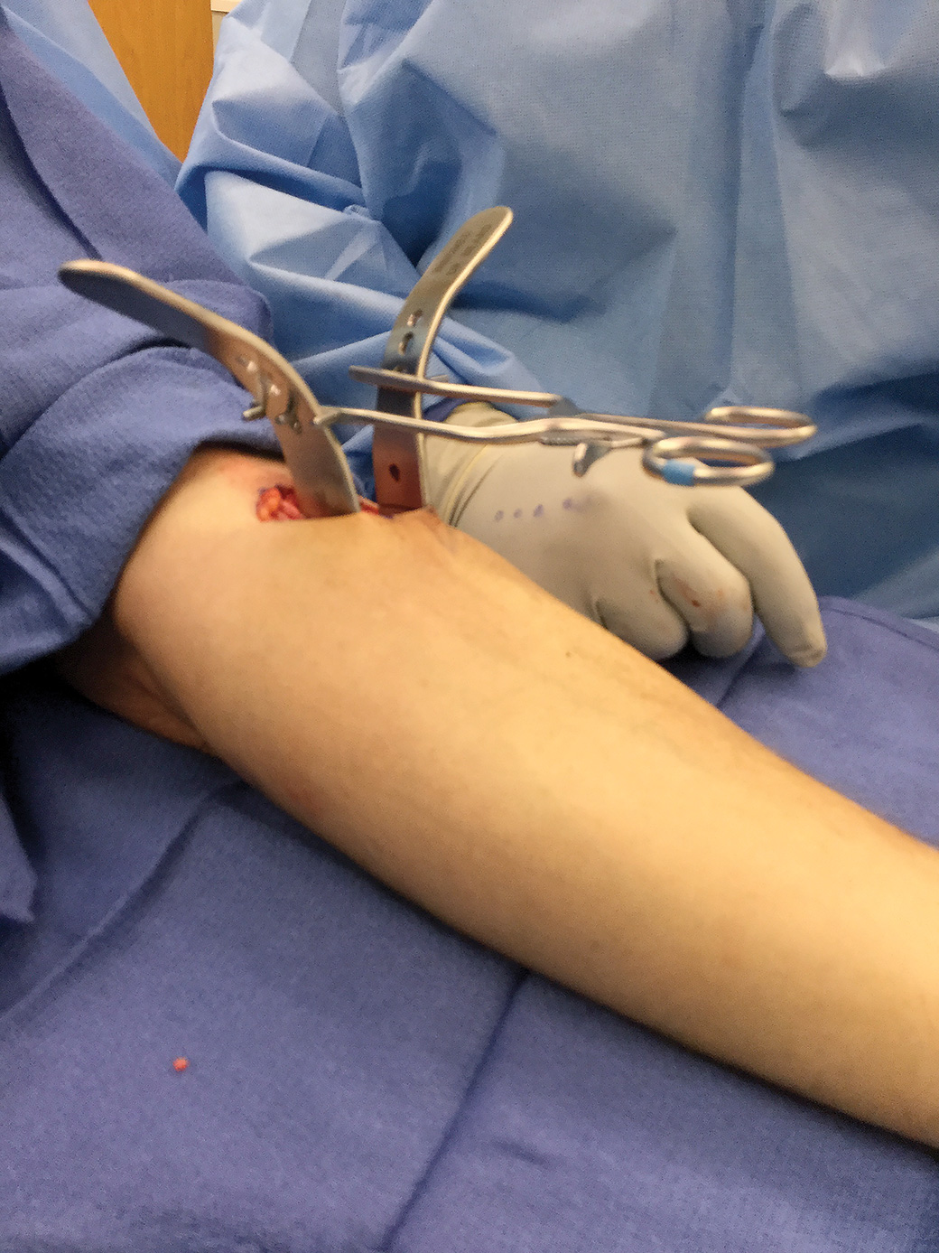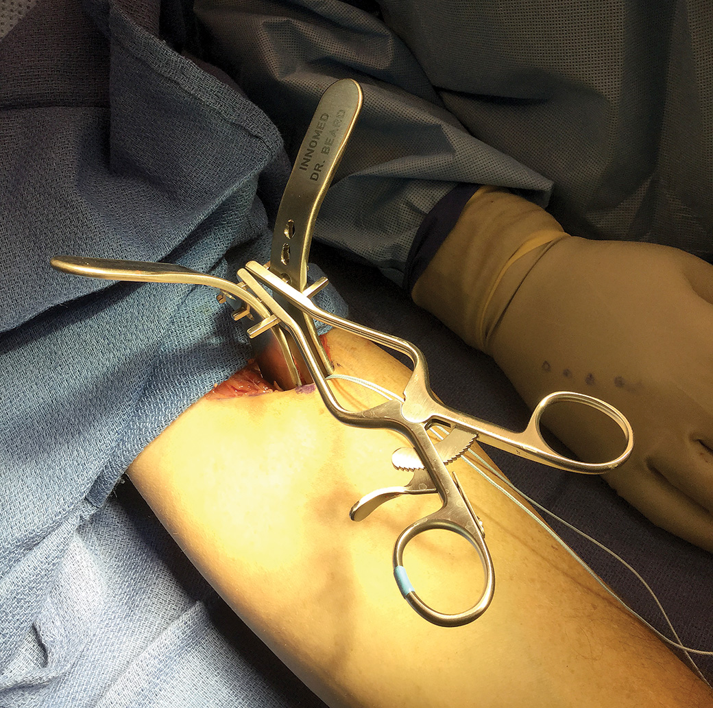 Designed to help optimize surgical exposure during anterior single incision distal biceps tendon reinsertion
