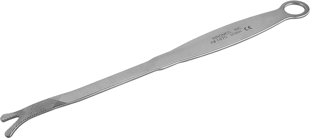 Used to help retract the biceps tendon superiorly. The two extensions allow the long head of the biceps to fit between them. The edges fit on the superior portion of the glenoid rim.