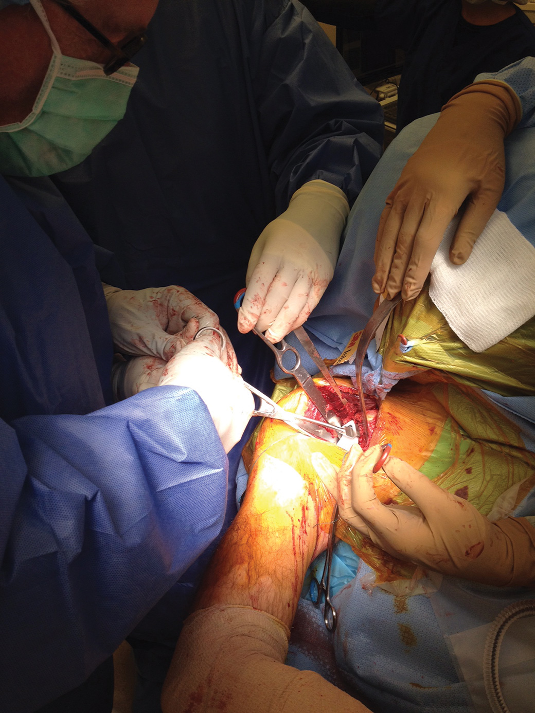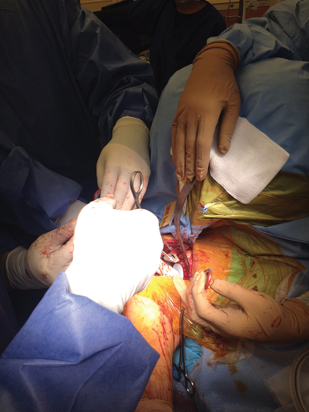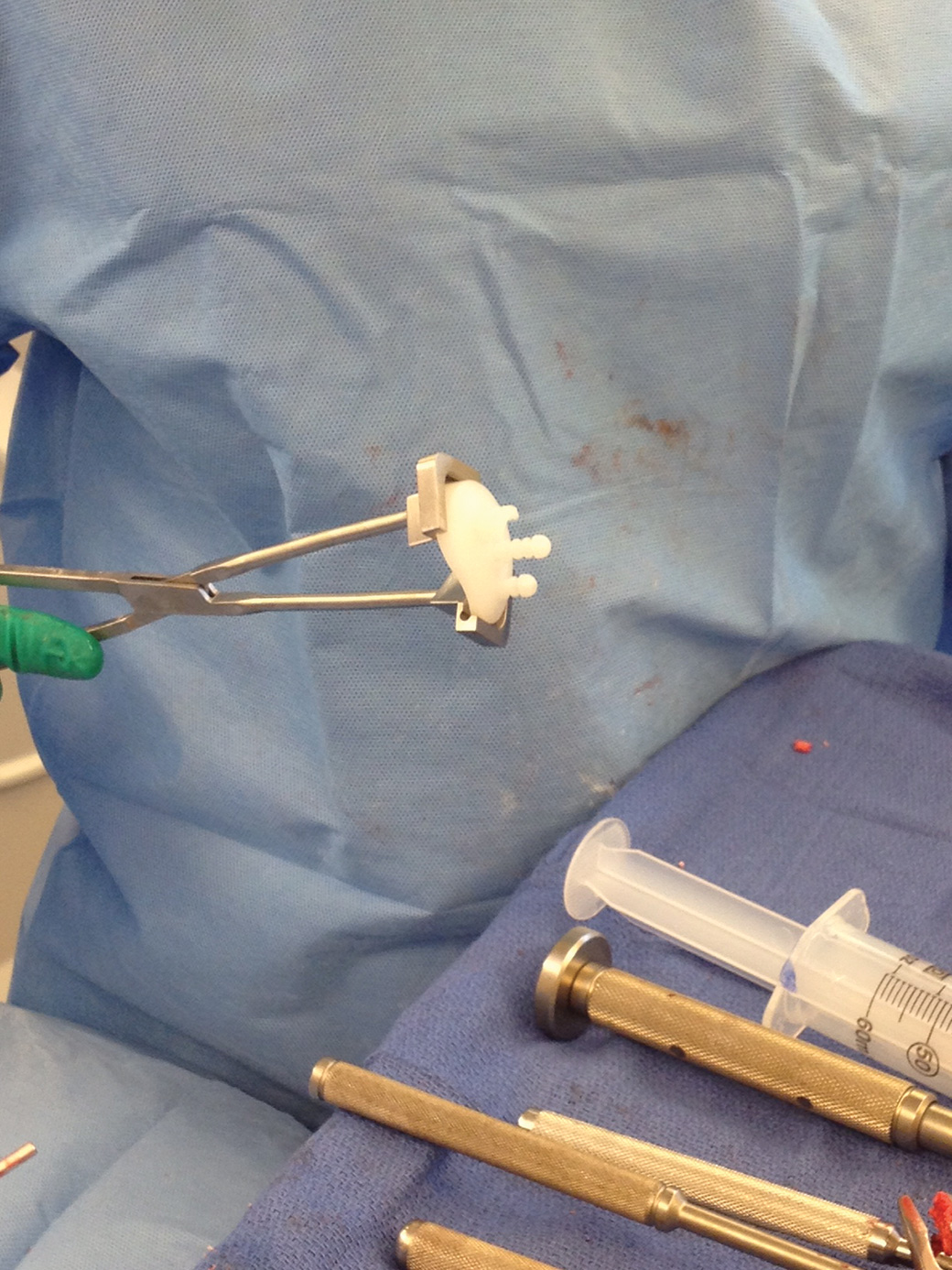 The retractor bar presses against the glenoid while the end of the retractor puts pressure on the posterior capsule