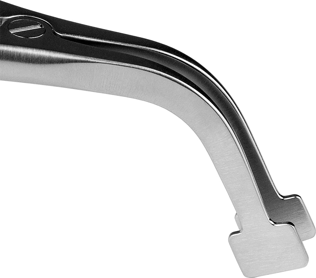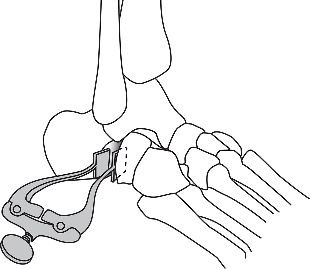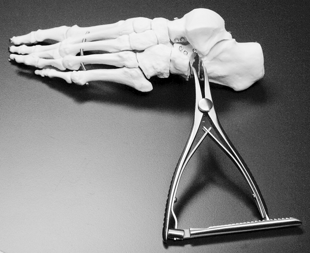 Pads have a large surface area, which easily separates the calcaneal osteo-tomized bone for placement of tricortical bone graft. Large pad surface area helps prevent the compression of soft calcaneal cancellous bone.
