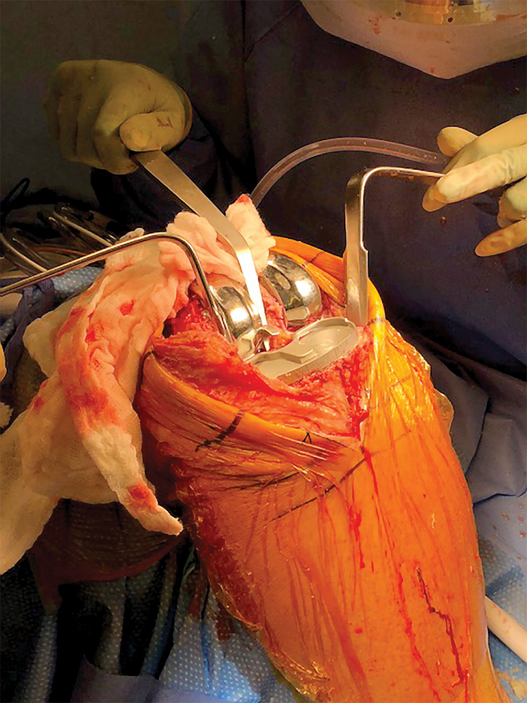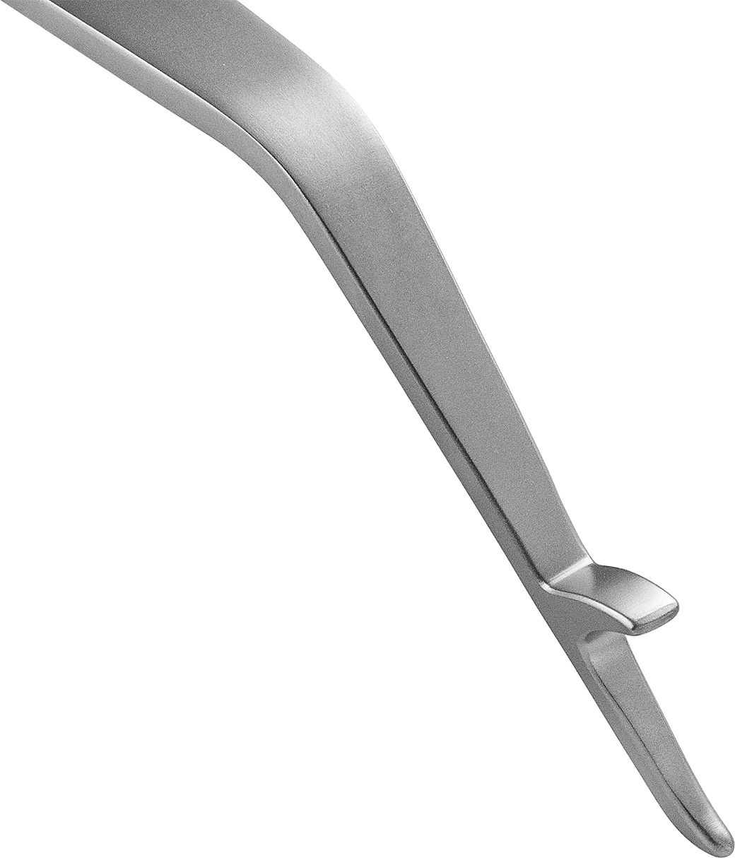 Designed for use in TKR, the hook on the front of the blade acts as a stop to help prevent the retractor from deep penetration behind the tibia