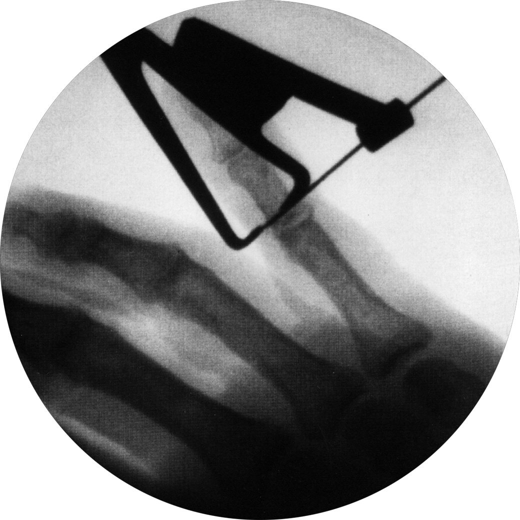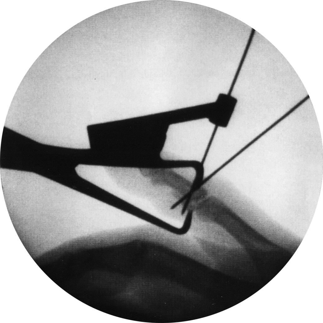Used for small bones, the clamp allows accurate insertion of pins for internal fixation. The cannula has a 1.8mm internal diameter.