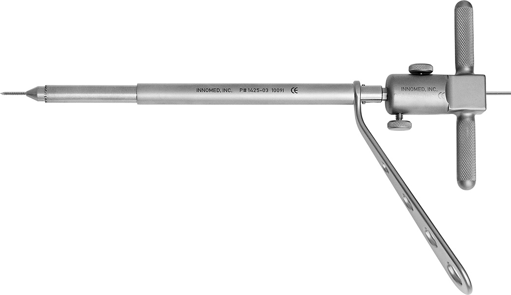 • Allows use of trephine at oblique angles to bone surface by using an anchoring K-wire and cannulated trephine
