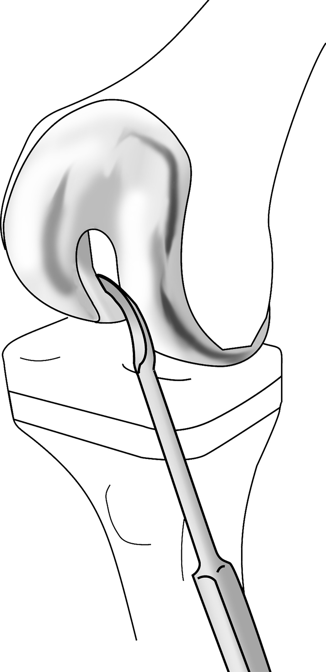 Can be used to help separate the prosthesis/bone or prosthesis/cement interface. The curve of the osteotome allows it to be used in the femoral notch of a femoral component.