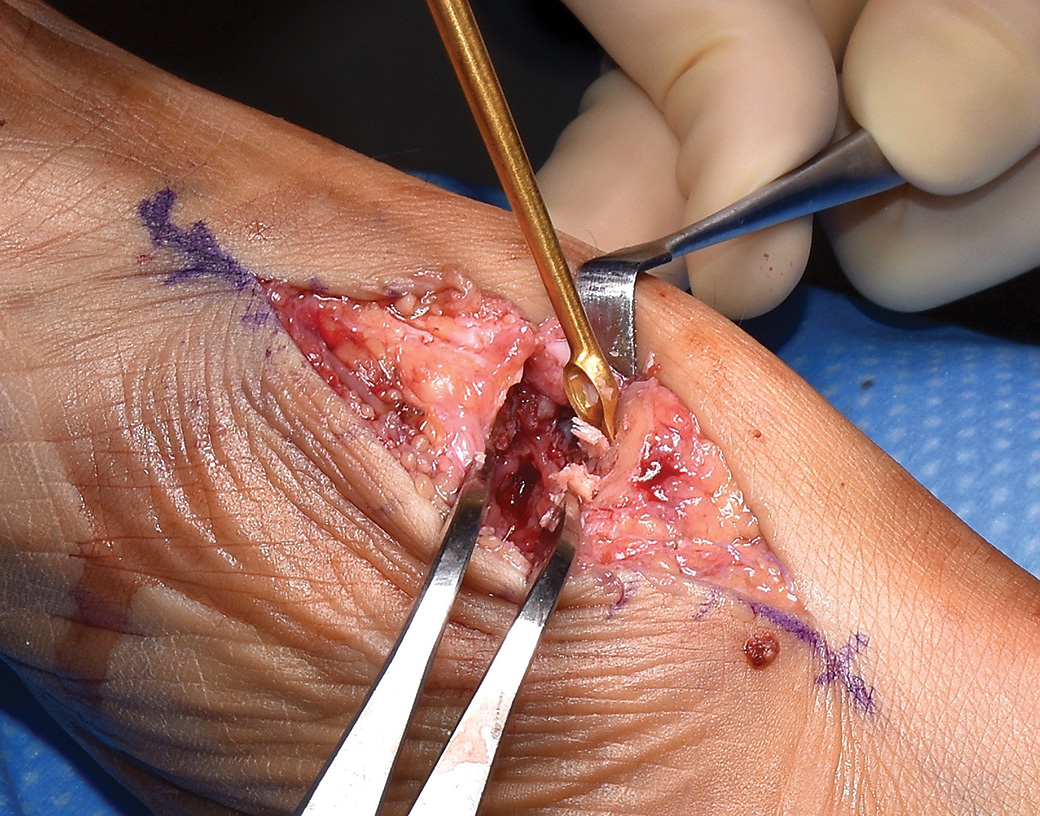 The osteotome portion also can be used to “feather” the subchondral surface to expose bleeding bone. It is also useful in instances of obtaining autograft, as it can be used to create a bone window and then remove cancellous bone.