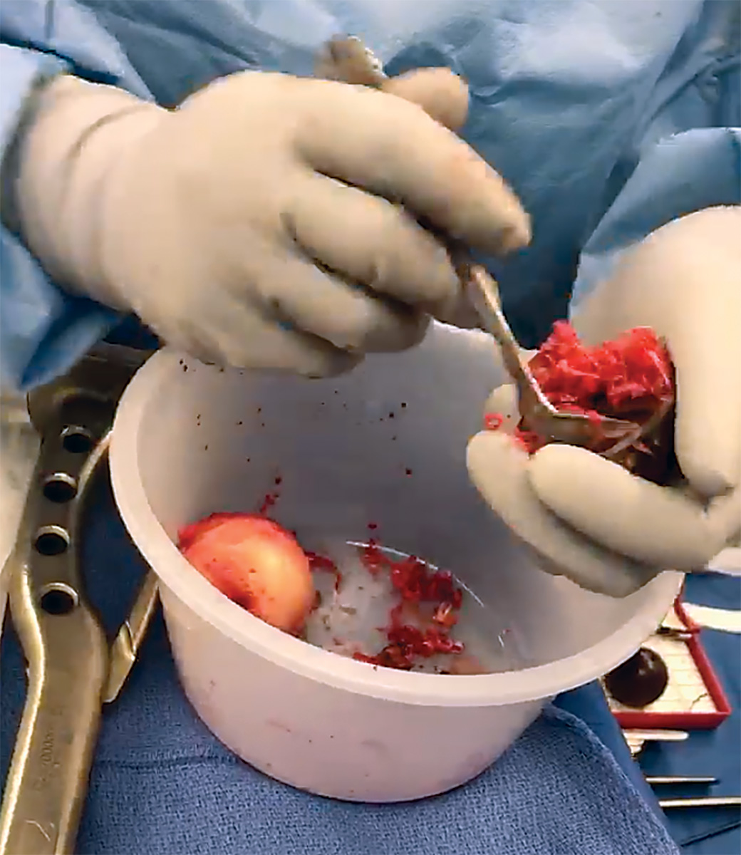 Designed for right or left handed use to easily remove bone fragments from acetabular graters