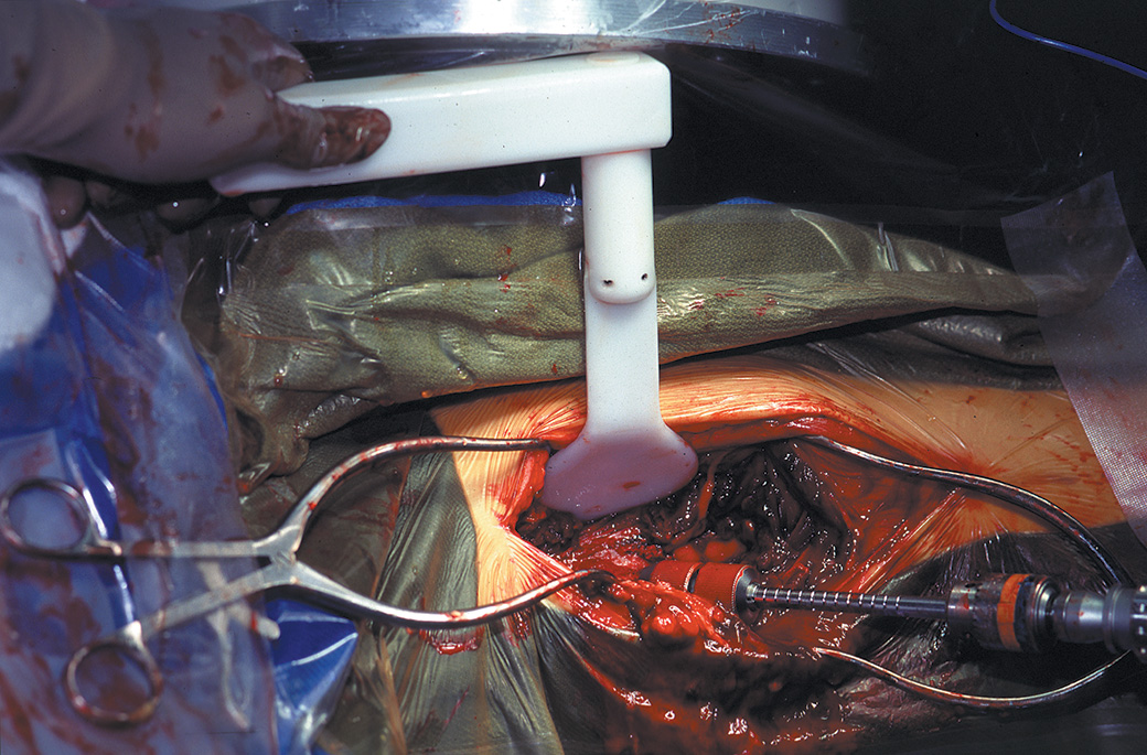 Designed to be used in hip fractures with the advantage that the retractor can be kept in place while using image intensification or taking an x-ray. The handle can be rotated to the right or left for surgeon preference. May be steam or gas sterilized.