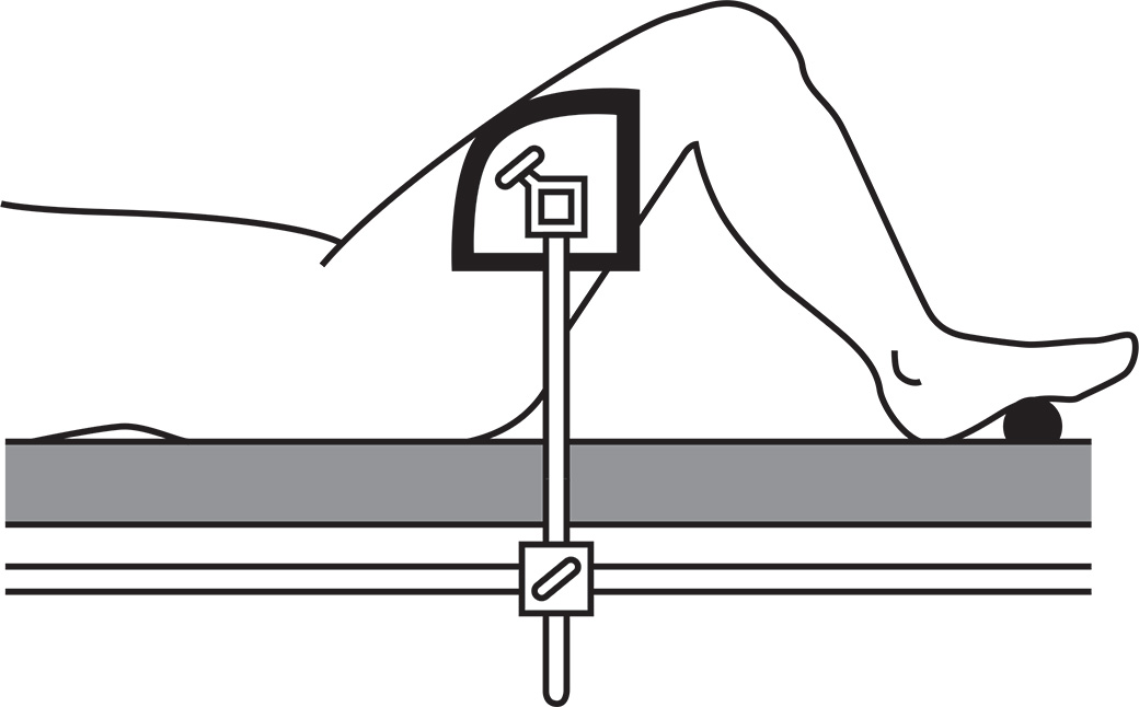 Placed against the thigh, helping to hold the leg upright in knee surgery