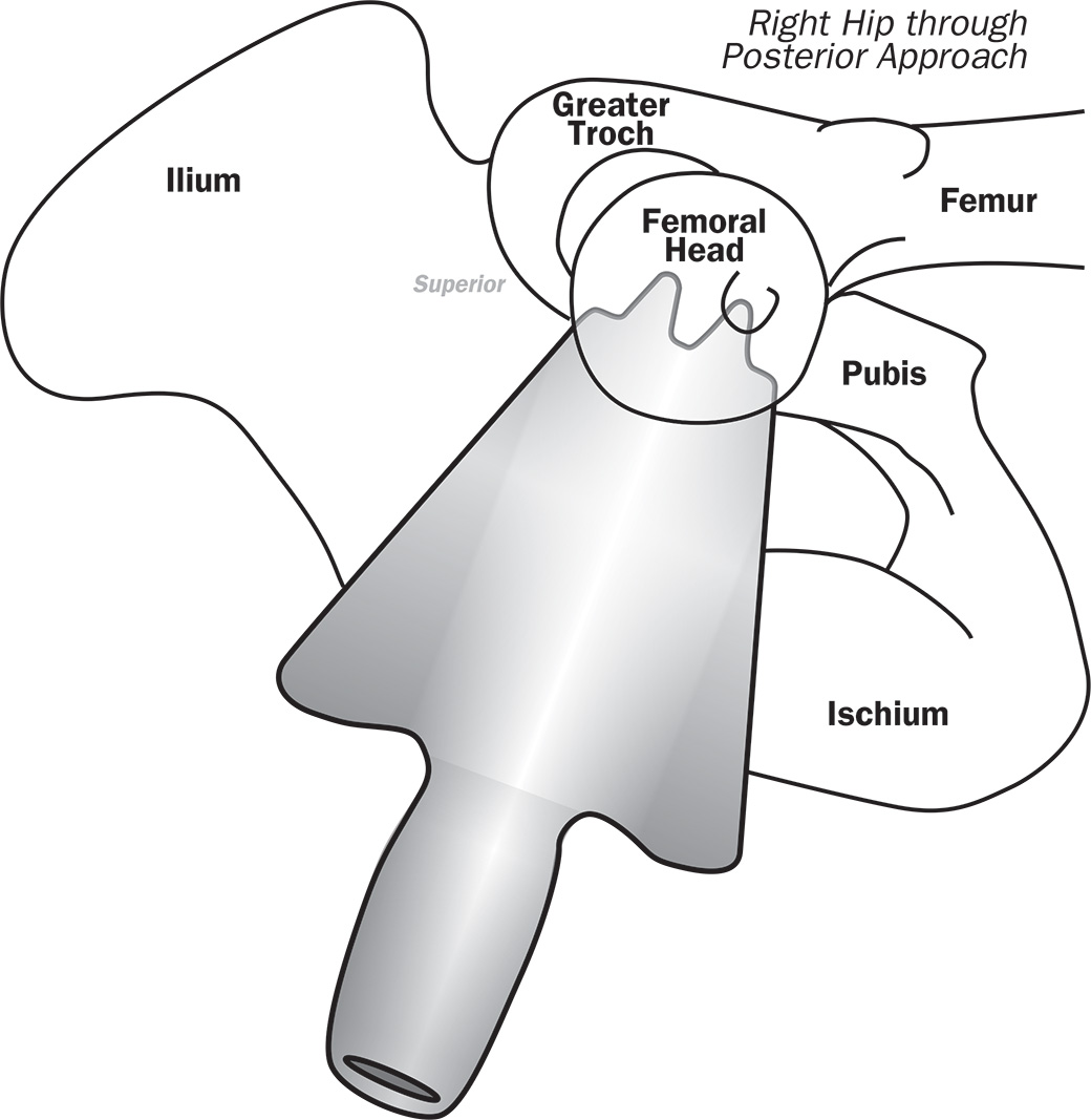 Helps to elevate the femur and provide a trough for bone to collect in during shaping of the femoral head