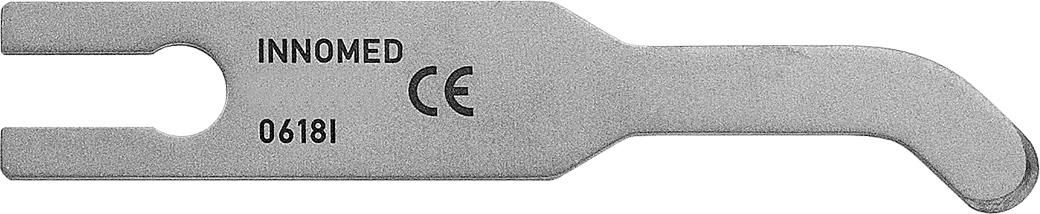 Optional Curved Chisel Blades are designed to help loosen the cement/prosthesis interval in TKA tibial tray and femoral component revisions. The curved design is useful in working around pegs & fins to get posterior cement access. Also helpful in revision of a total ankle prosthesis.