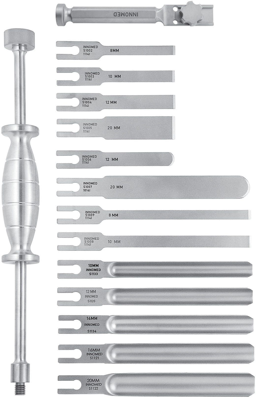 • Sharp, flexible blades are well suited for loosening implants from cement or bony ingrowth fixation