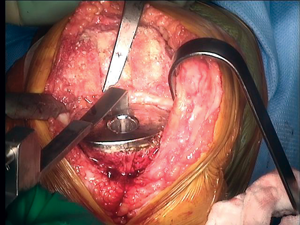 Designed to help break the posterior cement-bone interface when removing a cemented tibial TKA component