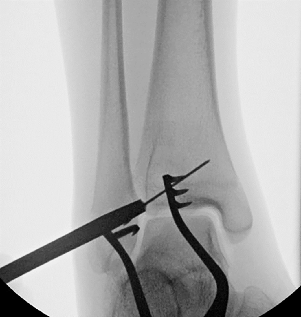 The spiked tip design minimizes migration of the awl when inserting the K-wire at an oblique angle to the bone surface.