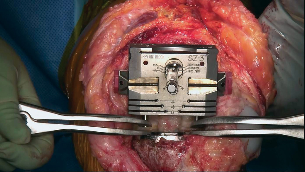 Designed to help tense the medial and lateral ligaments for gap balancing during revision surgery so that the AP cutting block does not impinge on the spreader during balancing