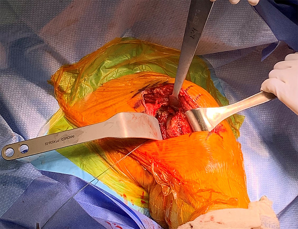 Designed to help alleviate tension on anterior glenoid structures, while the handle is designed to optionally be clamped to the drape