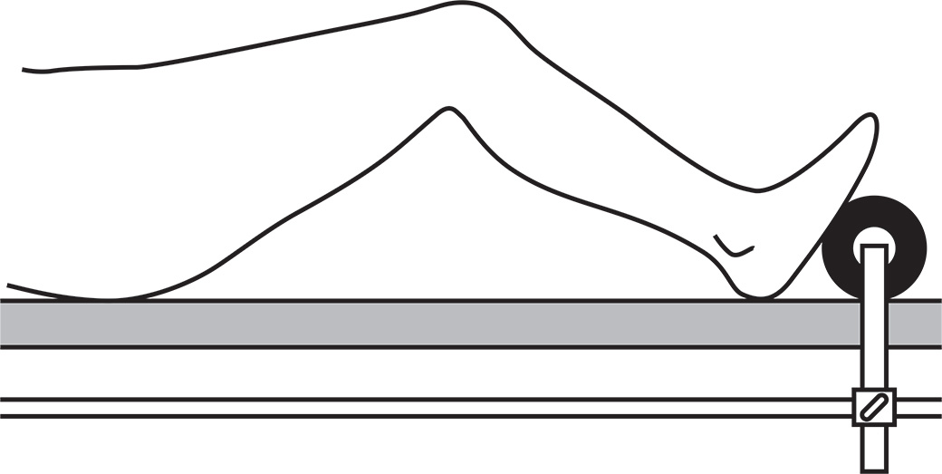 Helps to open up the knee joint when pressure is applied to the lower leg. Pad and sterilizable table clamp included.