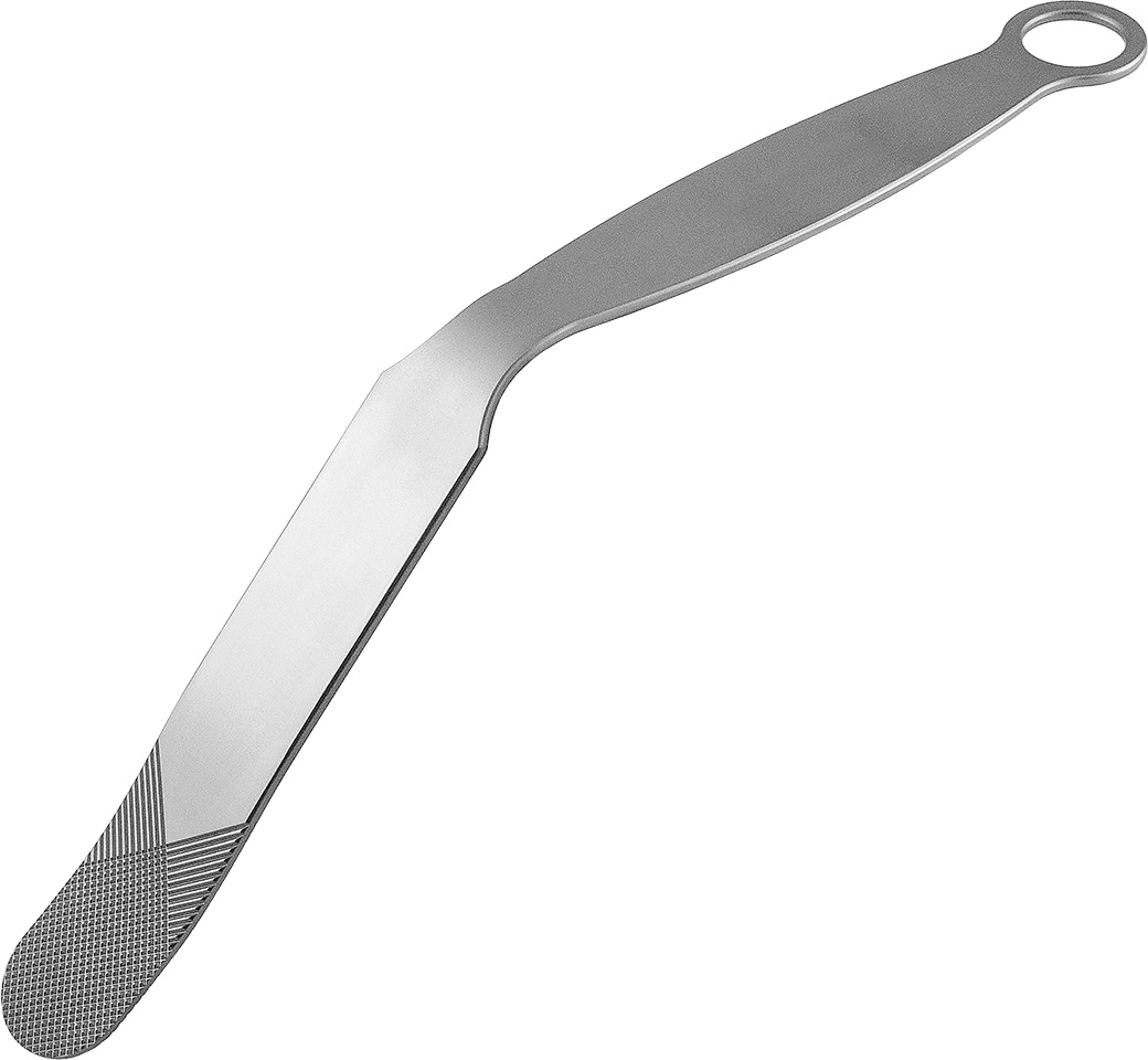 The retractor is serrated on both sides to help prevent slippage.