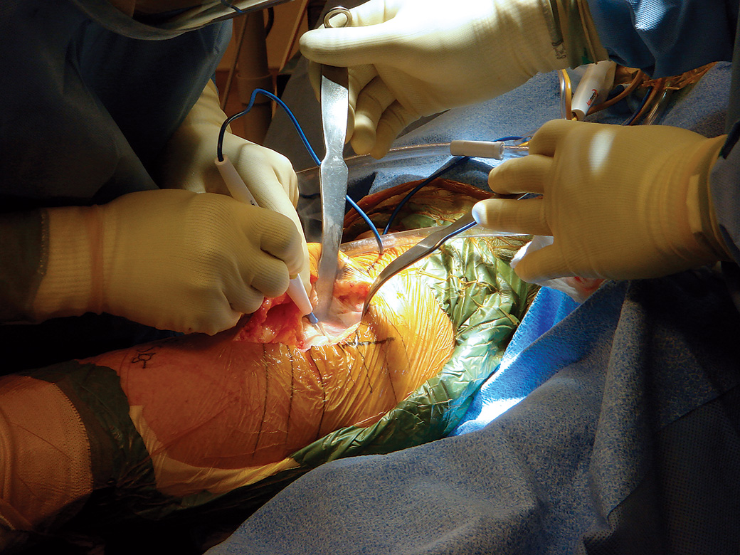 Useful for retracting tissues around the bone. Can be held in place with weights or by hand.