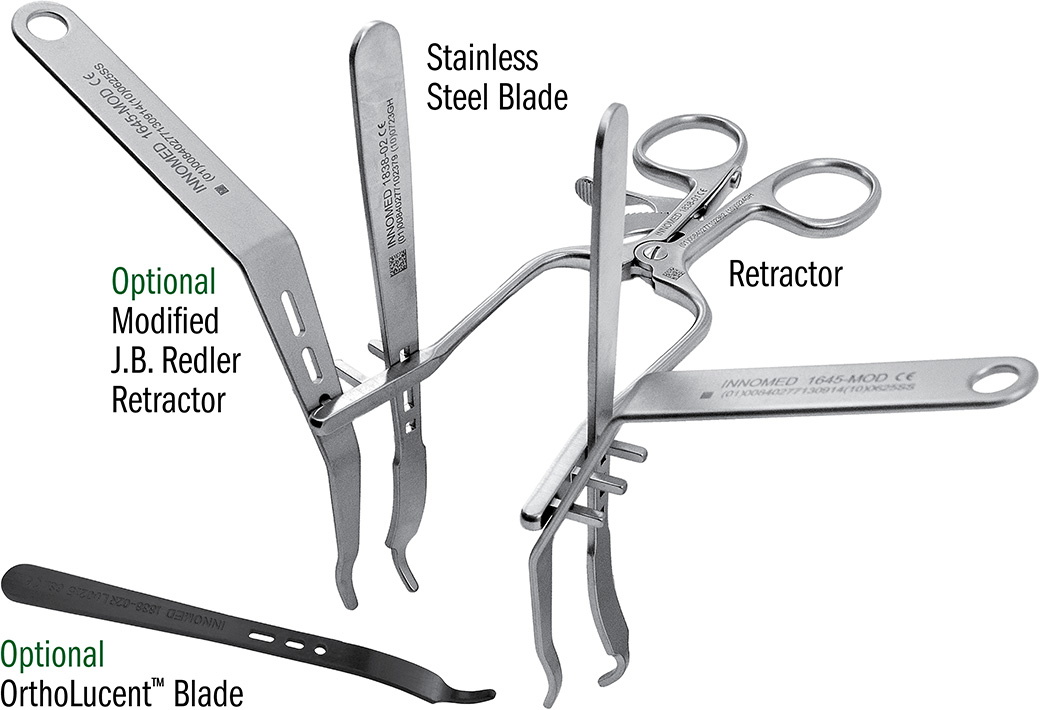 Modified with three hole sizes which allow for a variety of positioning angle options using the teeth of the Dodson Retractor