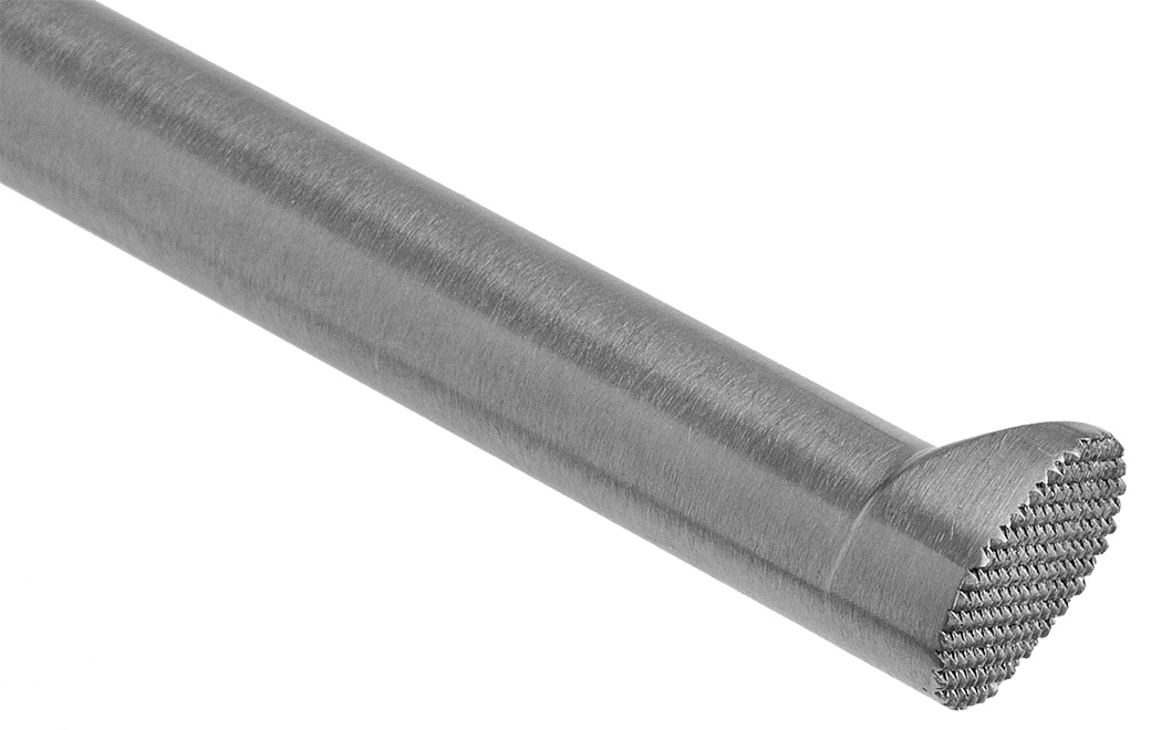 Designed to facilitate cement removal in smaller diameter bone of the humerus, ulna, and smaller implant geometries
