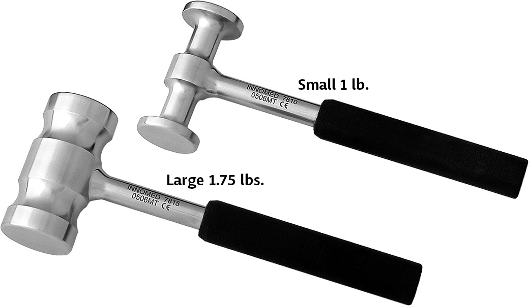 These solid stainless steel mallets each have a comfortable 4½” grip made of a textured silicone that helps prevent the surgeon’s gloved hand from slipping and helps maintain a solid grip.