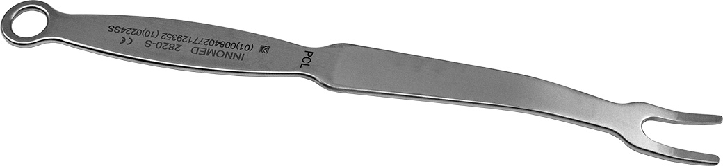 Designed to straddle the cruciate ligament and lie in the condylar notch, allowing the surgeon to retract the tibia away from the femur for better access