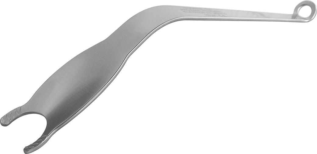 Designed to elevate the proximal femur during total hip surgery while providing better access to the intramedullary canal. The handles are contoured to allow the surgeon a clear field of view of the operating area.