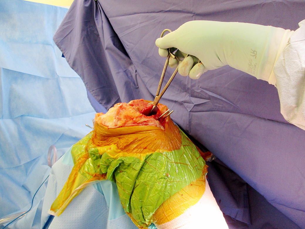 Designed to help grasp and remove the cut proximal portion of the tibia during total and uni knee arthroplasty