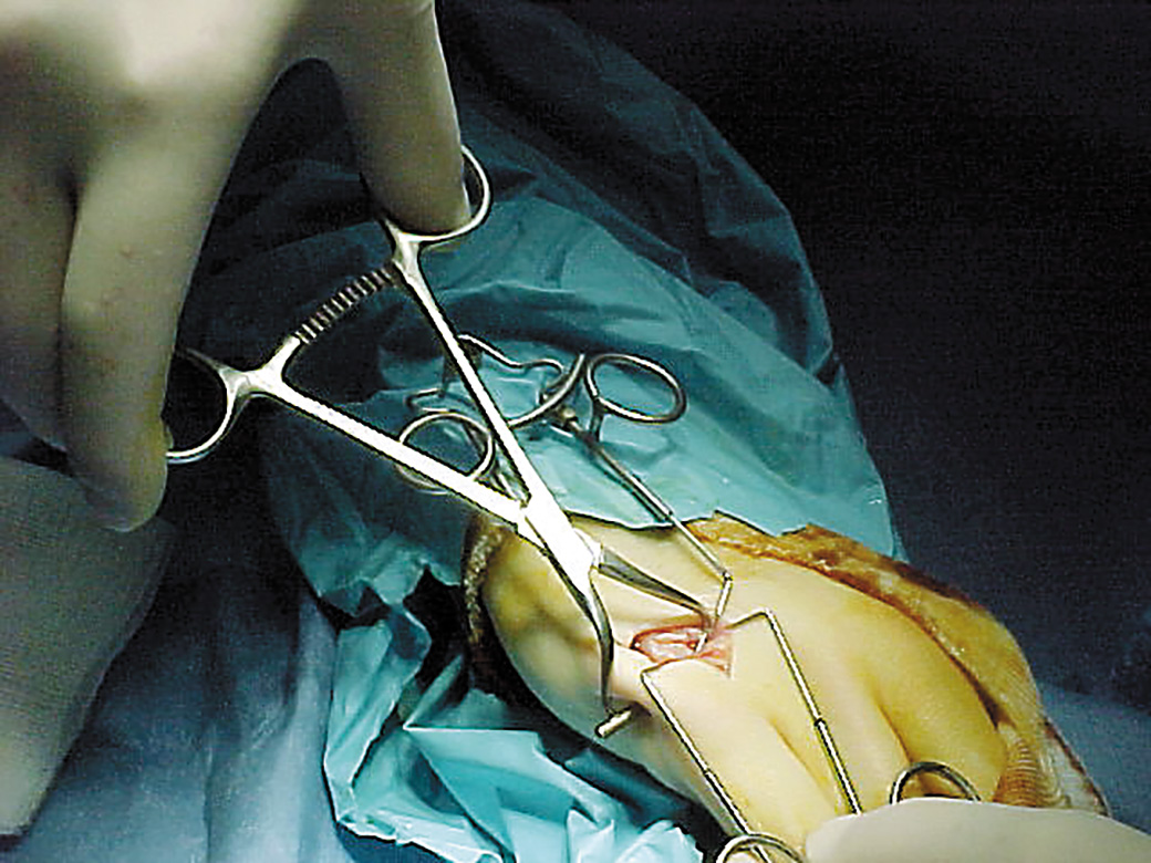 Holds a small bone in apposition during percutaneous pinning of a fracture