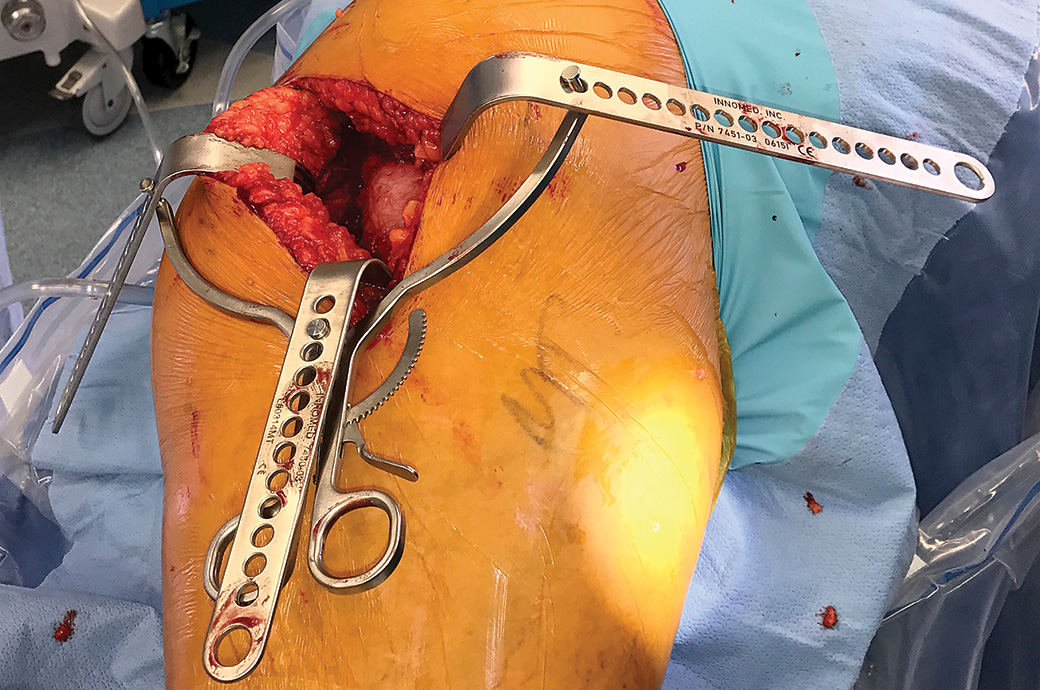 The expandable design allows for a wide variety of charnley-style blades to be used for exposure in total joint and trauma procedures