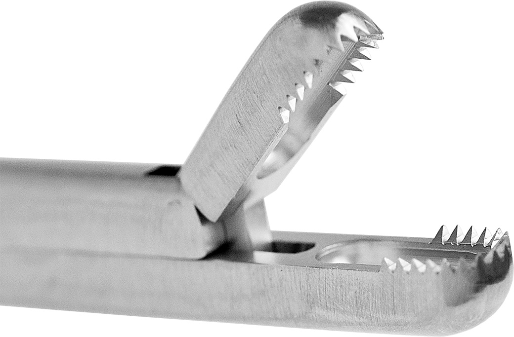 Graspers sharp teeth help grasp onto tissue and bone