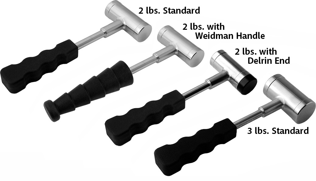 Designed to have a shock-absorbing force, providing less bounce or wasted force. The Mallet is filled with a shock-absorbing media and has a flat striking surface to keep the Mallet centered on an instrument. The bottom can also be used to tap an implant in place.