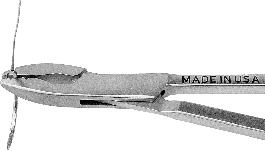The groove captures the outer (convex) side of the needle and prevents the needle from spinning even when applying significant pressure. Useful for reattaching the rotator cuff in rotator cuff repairs, as well as in attaching suture anchors.