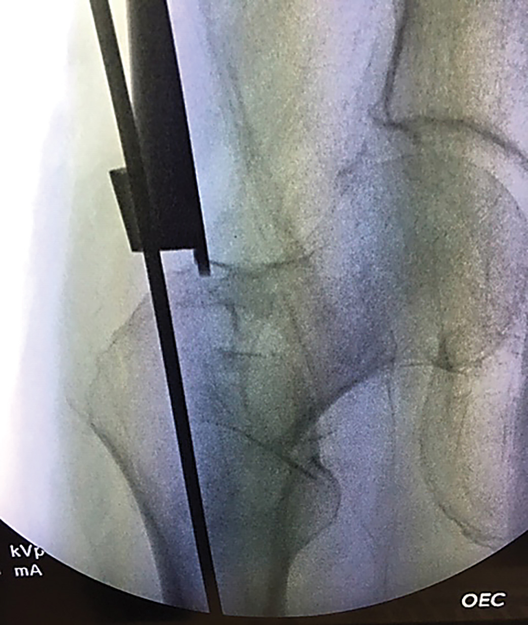 Retractor/guide designed for aiming guide wire when performing femoral nailing (TFN for an intertrochanteric fracture), ortibial nailing using the parapatellar approach