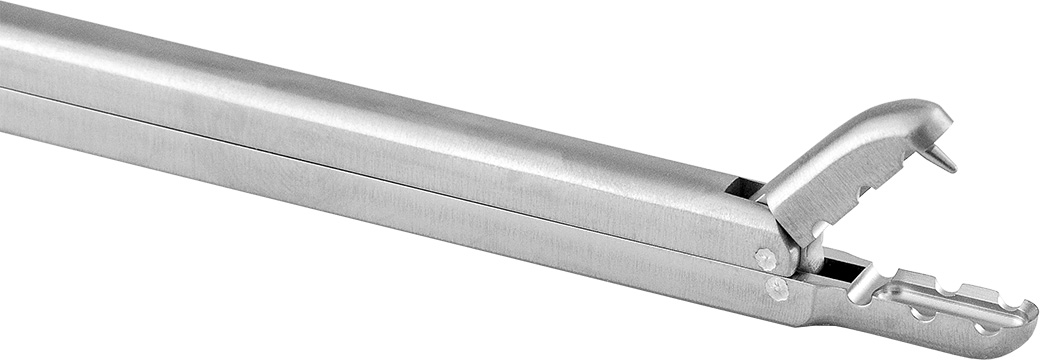 Incorporates a 3 mm spike into its upper jaw with a matching recess in the lower jaw, enabling the surgeon to securely grasp soft tissue structures within the knee. Particularly useful for grasping the posterior horn of either the medial or lateral meniscus. Also useful when excising the cruciate ligaments, capturing loose bodies, holding the retinaculum during patellar preparation, and grasping the capsule during wound culture.