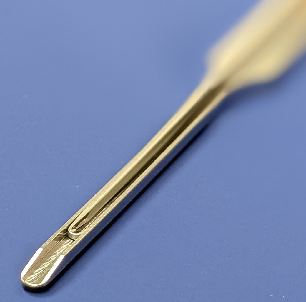 Dimensions: Overall Length: 10.1″ (25,7 cm) Insertion Blade Length: 2.125″ (5,4 cm) Insertion Blade Height: 1,7 mm Insertion Blade Width: 3,4 mm Guide Channel Width: 2,4 mm