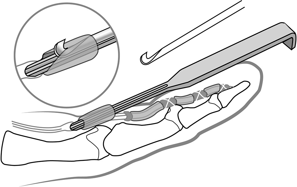 Designed for sonographically guided A1 annular ligament release, the guide is used with a hook knife, and the release is carried out via a small incision while the operation is carried out quasi percutaneously using sonographic control