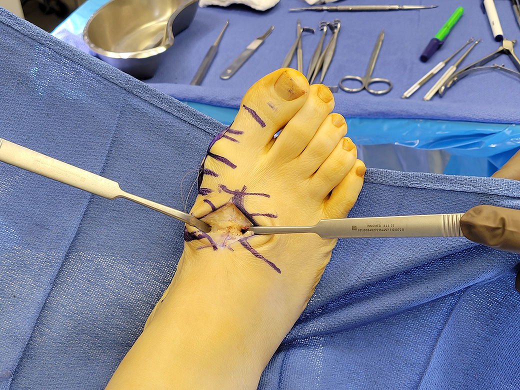 Angular design helps to go around bone for retraction and elevation — especially useful in small bone surgery of the hand/wrist and foot/ankle