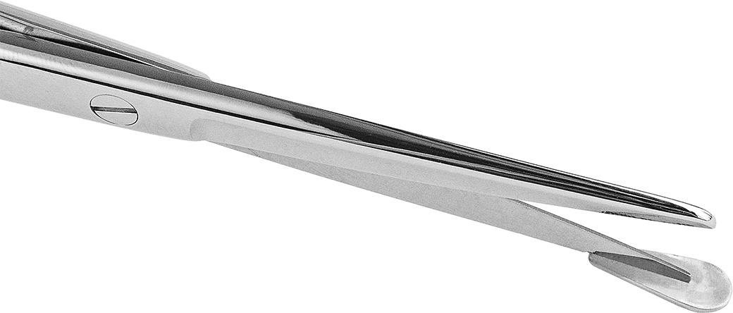 Designed with a blunt, flat bar fixed to the lower limb, the scissors also act as a dissector to protect underlying vital structures