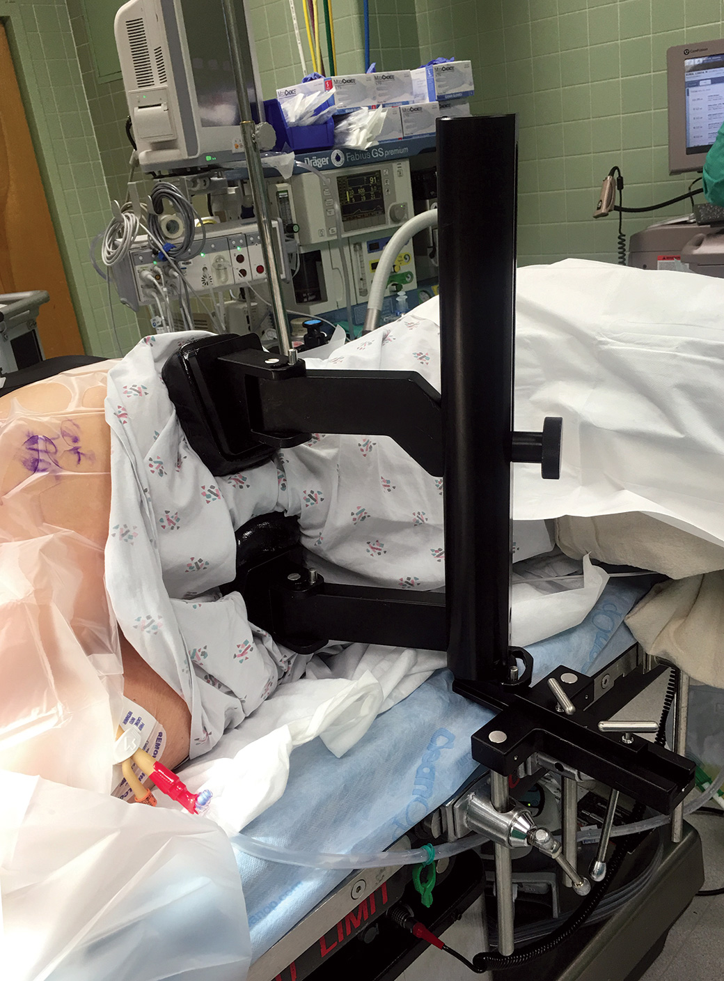 Designed to be adjustable yet sturdy, and is especially helpful when stabilizing a large patient during total hip and revision surgery