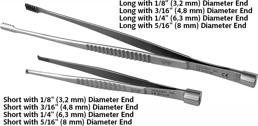 Bone graft can be grasped, placed & impacted without changing hands or instruments — when the forceps are closed, they form into an impacting punch