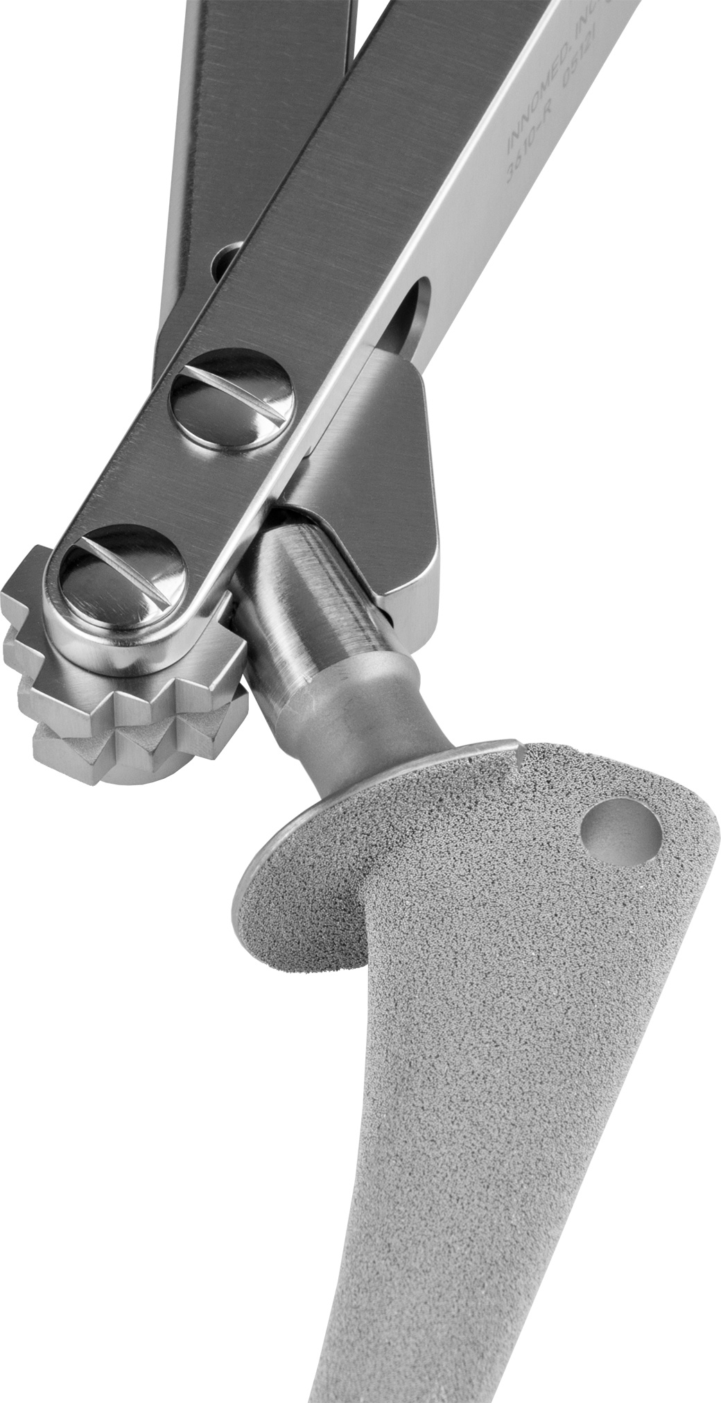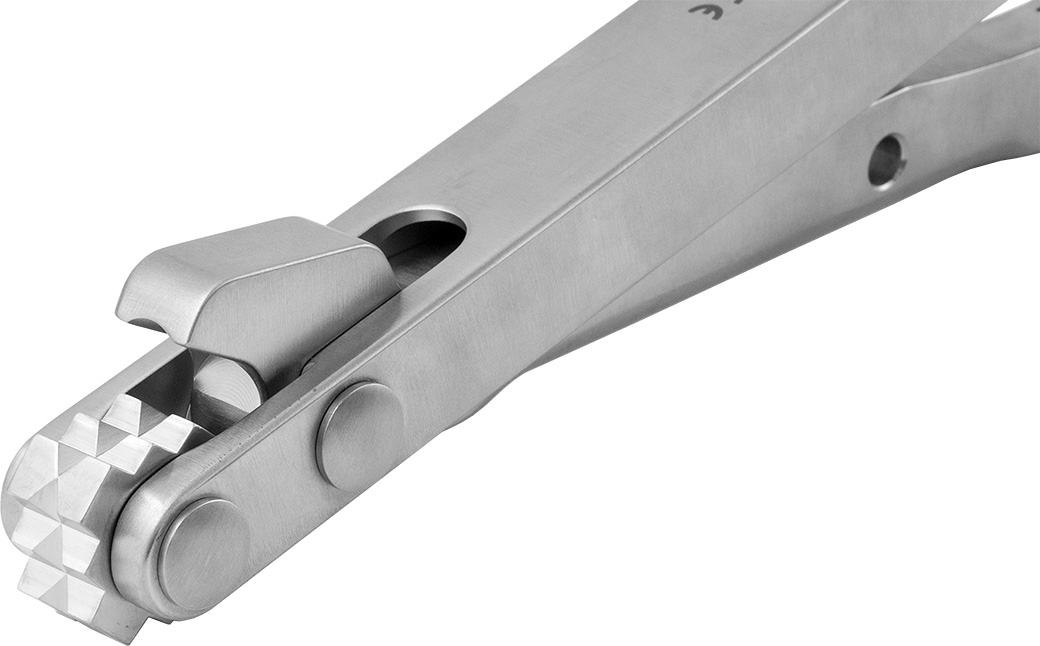 Designed to clamp onto the taper of a femoral hip stem after the modular head has been removed. The extractor is equipped with a swivel block for attachment of a slap hammer. The swivel block helps keep the slap hammer in line with the angle of the femoral stem. Includes standard slap hammer #3925.