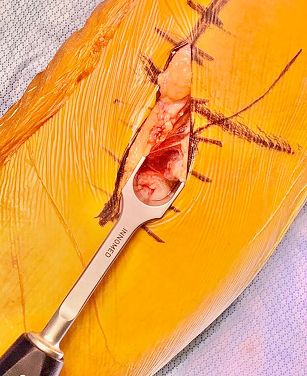 Designed to retract in a continuous way in three directions, helping to prevent the surrounding vital structures from entering the field while drilling or performing the repair work
