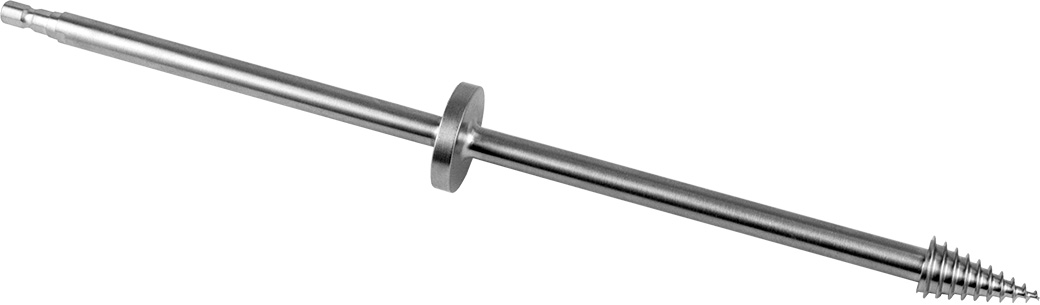 Designed so the threads engage the head under power and draws the corkscrew in until the head begins to turn. The extra long shaft keeps the power reamer out of the operative site for better visualization and improves the lever arm when pivoting the head out of the acetabulum. The grip ring allows the surgeon to pull head out of acetabulum and soft tissue envelope when disengaged from the power reamer.