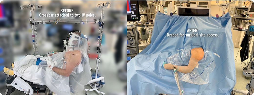 Designed for use during shoulder surgery in the beach chair position or during other surgical procedures to support and keep the surgical drapes away from the surgical site, maintain a sterile field, and help to allow the anesthesia provider good access to the airway