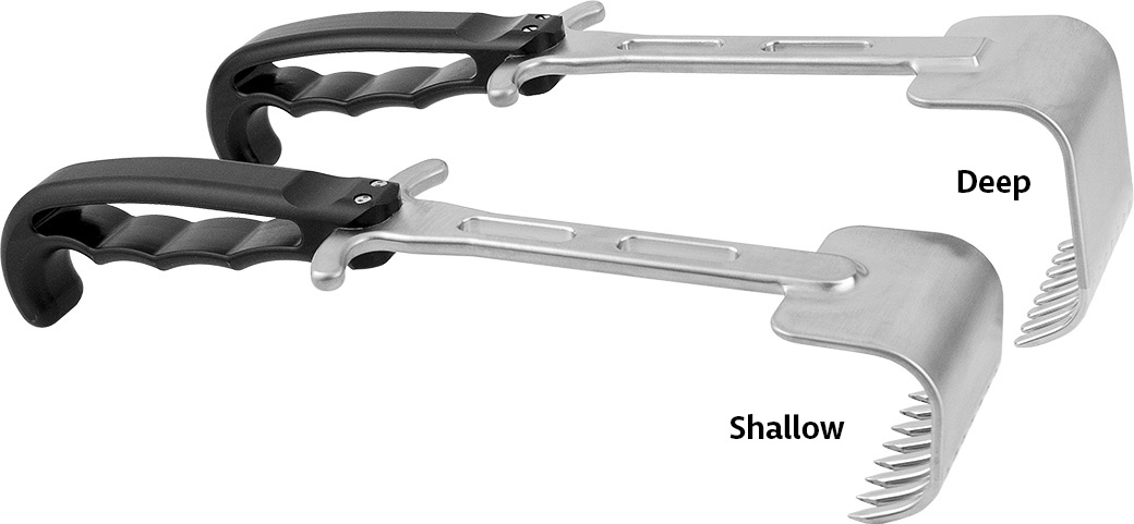 Designed for general use soft tissue retraction, the ergonomic handle allows for a better grip and less fatigue