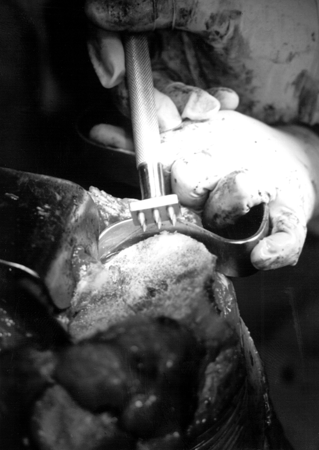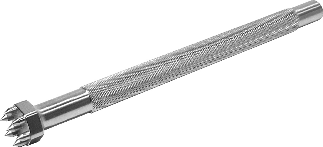 Designed to impact cancellous bone in the subchondral weight bearing region of the tibia. This helps to improve the mechanical interlock in the cancellous bone/cement interface. The sharp tips can be used on normal and dense cancellous bone, and they can also be used when a significant deformity has been encountered resulting in sclerotic bone.